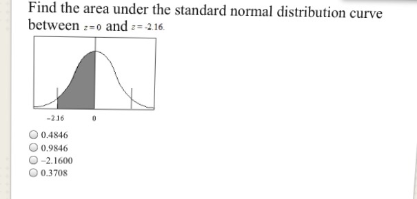 Find the area under the standard normal curve to the left of z = 1.26. 0.4066 + x = 0.5. To answer this question, we simply need to look up the value in the z table that corresponds to 1.26: Find the area under the curve outside of two values. The area under the standard normal curve to the left of z = 1.26 is 0.8962.